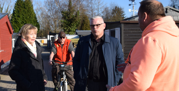 Entsetzt zeigten sich Rainer Keller und Kerstin Löwenstein über die Erzählungen von Monika Gichel, die ebenfalls zum Besuch der Politiker anwesend war. Beschimpft worden wäre sie von einem Mitarbeiter des Kreises Wesel, der ihr gesagt habe, dass sie den Hund abschaffen und arbeiten gehen solle, dann bräuchte sie auch die Grundsicherung nicht, könne ja in eine Notunterkunft gehen. Monika Gichel lebte 20 Jahre auf dem Platz, ist Rentnerin und bezog bis zum 28.2. zusätzlich zur schmalen Rente, die zum Leben nicht ausreicht, eine Grundsicherung. „Ich hab noch 37 Euro, die Unterstützung ist mir komplett gestrichen worden, weil ich auf dem Campingplatz nicht mehr wohnen darf“, berichtete sie. Keller zeigte sich schockiert, wollte gar nicht glauben, was er hörte und sagte: “Ich finde das hochgradig traurig, das muss geklärt werden“. Und. “So geht man nicht mit Menschen um.“