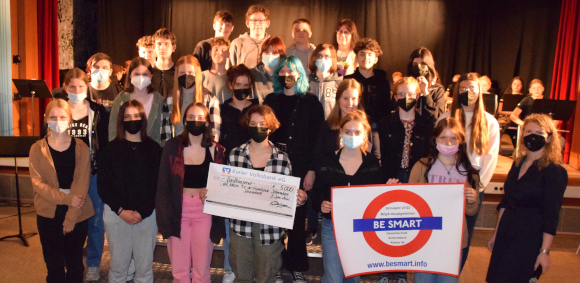 8.6.2022 Schermbeck (geg), Dass sich die Klasse 9e der Gesamtschule in Schermbeck vor fünf Jahren verpflichtet hat, nikotinfrei zu bleiben und das auch heute noch ist, wurde jetzt belohnt. Jahr für Jahr, bis auf zwei Jahre, in denen der Wettbewerb der Coronapandemie zum Opfer fiel, nahm sie am bundesweiten Klassenwettbewerb zur Förderung des Nichtrauchens „Be Smart – Don’t Start“ teil. Dafür haben die Schülerinnen und Schüler jetzt den Hauptpreis der Bundeszentrale für gesundheitliche Aufklärung (BZgA) in Höhe von immerhin 5000 Euro für die Klassenklasse, gewonnen.