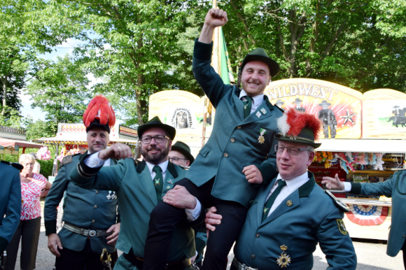 Den Königsscheibenpokal, den jemand erhält, der ein Topergebnis abgeliefert hat, aber nach den Statuten kein König werden kann, bekam Tobias Kamps. König kann nur werden, wer mindestens 21 Jahre alt ist und dem Verein seit drei oder mehr Jahre angehört. Außerdem kann jemand nur alle zehn Jahre König werden.