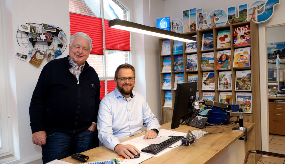 1.2.2023 Gahlen/Kirchhellen (geg). Seit einem Vierteljahrhundert schon veranstaltet das Familienunternehmen BOKA-Tours vielfältige und außergewöhnliche Busreisen in Deutschland und Europa. Der Kirchhellener Hans-Dieter Wrobel war im Jahr 1998 Mitbegründer und ist Geschäftsführer des Bustouristik-Unternehmens. Seit dem Jahr 2021 wurde die Geschäftsführung durch den Sohn Christoph Wrobel erweitert. Nun stehen Vater und Sohn gemeinsam auf der Kommandobrücke und lenken die Geschicke des Unternehmens und stehen mit dem Team des Gahlener Reiseshops für eine geballte Kompetenz in Sachen (Bus-)Reisen.