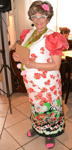 Uschi, alias Claudia Oberheim, ist jemand ganz besonderes. Alle kennen sie und jeder liebt sie. Kaum den Mund aufgemacht, gingen schon die ersten Lacher durch die Gaststätte. Im gewohnt skurrilen Outfit: pinkfarbene Socken, plüschige Hausschlappen, Blumenkleid aus den 70ern, eine Tröte um den Hals, eine pinke Blume im Haar, brachte sie in bewährter Manier ihren unschlagbaren Humor unter die Frauen. „Wir haben uns so lange nicht mehr gesehen“, begrüßte sie die Gäste. „Alles hat sich verändert, ich natürlich nur zu meinem Vorteil.“ Uschi heizte das Publikum ein - ganz nach dem Motto „Alles kann, nichts muss“ kam ein Gag nach dem anderen. „Uschi untenrum ist egal, obenrum muss sitzen“, bezogen auf ihre Haare, war dabei nur einer von Vielen. Dann wurde sie kurz ernst: „Wir haben heute keine Kosten und Mühen gescheut. Wir haben einfach die gleichen Fragen wie beim letzten Mal genommen – kann sich ja eh keiner mehr daran erinnern“, erzählt sie mit einem breiten Grinsen im Gesicht.