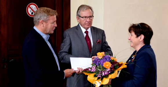 Dort hat sie das "Bundesverdienstkreuz am Bande des Verdienstordens" erhalten. Mit „Euch alle“ meinte sie ihre zahlreichen Mitstreiter, denn „Allein ist man nichts“ betonte sie. Ihr Lebensmotto sei: “Nicht meckern, sondern anpacken“. .