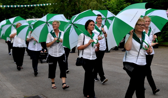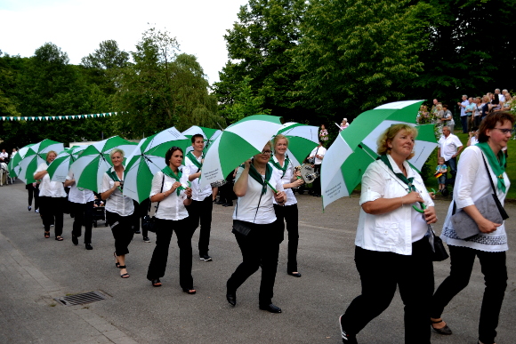 Natürlich hatte das Folgen für den Gahlener Junggesellen, der die Vorstandsfrauen daraufhin zu sich nach Hause einlud. Was da genau passiert ist, wollten die beteiligten Damen nicht verraten, aber das Schmunzeln in ihrem Gesicht lässt so einiges vermuten. Auf jeden Fall wurde an diesem Abend die vierte Kompanie gegründet, die fortan bei jedem Umzug mitmarschieren. Ihr äußerliches Zeichen: grün-weiße Kleidung und ein grün-weißer Regenschirm.