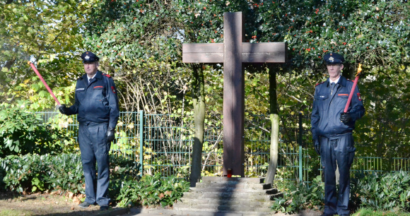 Nach dem gemeinsamen Gottesdienst schritten die Abordnungen der ev.Kirchengemeinde, der Feuerwehr und der Gahlener Vereine in einem stillen Zug zu den Erinnerungsstätten. Die musikalische Untermalung übernahmen der Posaunenchor und der MGV Gahlen.