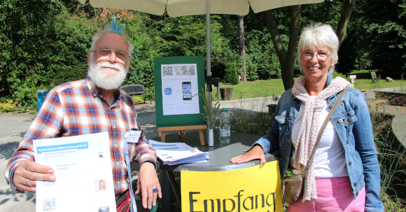 Empfangen wurden die Besucherinnen und Besucher von Willi Roderburg-Bastian und Elisabeth Vriesen-Siemen, die Flyer austeilten und über eine neue App informierten. Sie führt interessierte Jugendliche über den nahegelegenen Waldpfad um das Gut Esselt herum und lässt sie auf spielerische Art und Weise die Natur erkunden. Wer dem Pfad bis zum Ende folgte traf dort auf Gotthard Boelitz und seine zwei Bienenstöcke. Der Hobbyimker informierte über die nützlichen Insekten und erklärt beispielsweise den richtigen Umgang mit einem Bienenstich. Man solle nicht den „Pinzettengriff“ verwenden, sondern den Stachel mit dem Daumennagel wegstreichen, um so die Freisetzung weiteren Gifts zu vermeiden.