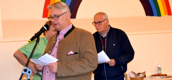 „Ihr müsst Euch den Kranz hier jetzt mal vorstellen“, scherzte Jürgen Höchst. Heimatvereinsvorsitzender zur Begrüßung. Neben Nachhaltigkeit und dem verantwortungsvollen Umgang mit unseren Ressourcen ist auch regionale Erzeugung ein wichtiger Bestandteil unserer künftigen Versorgung, hieß es. Bei zunehmend herausfordernden Umweltbedingungen ist es umso wichtiger seine Handlungsweisen zu überdenken und den Landwirten und Erzeugern auch einfach mal „Danke“ zu sagen, aber auch verantwortungsvoll mit den Lebensmitteln umzugehen.